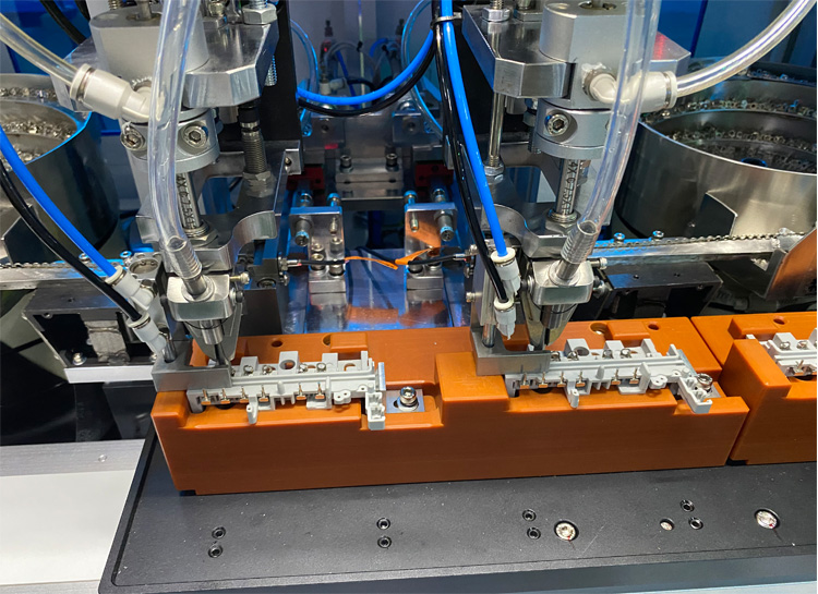 自動鎖螺絲機可根(gēn)據鎖附的螺絲規格的(de)不同,來選擇使用吹氣還是吸附的方式進行供料。一般同時鎖多顆螺絲,都是選用吹氣式的供(gòng)料方式。91视频成人版自動送釘機可配備12條管道,還能按(àn)供料需要進行屏蔽,適應(yīng)不同產品供料。